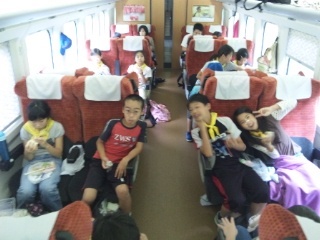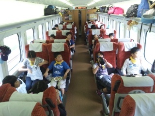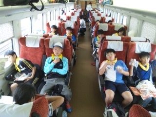 米沢駅を過ぎました。お弁当の時間です。楽しい会話がはずんでいます。