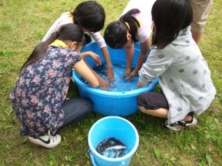続いて、鮎つかまえを体験しました。初めての体験。歓声とともに楽しさいっぱいのひとときとなりました。