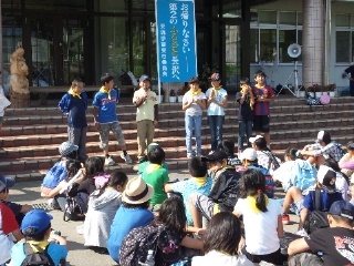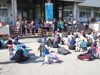 玄関前で終わりの会を行いました。ウォークラリーの表彰、一日の感想の発表など、楽しかった一日を振り返り、ホームステイ家庭に向かいました。