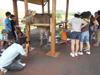 大笹牧場に着きました。乳搾り体験とバター作り体験をしました。初めての体験。思い出になりました。