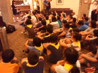 宿舎に到着しました。東照宮の見学後半から雨が降り始め、開園式はホテルのロビーで行いました。