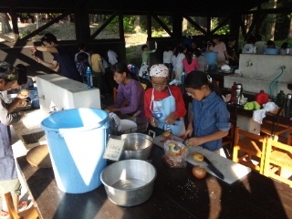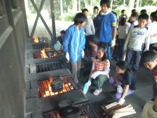 宿舎周辺の散策のあとは、いよいよ飯ごう炊さんです。担当する役割ごとに説明を受け、活動開始です。