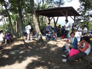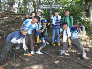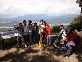 全員がそろって雨乞山の山頂に着きました。眼下に広がる川場村の景色に歓声が響きわたっています。