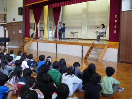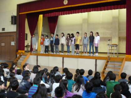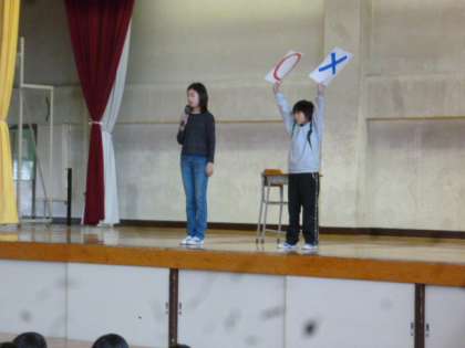 今日の児童集会では、後期放送委員会のみなさんが、クイズや寸劇を通して日常の活動の様子を細かく紹介しました。