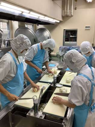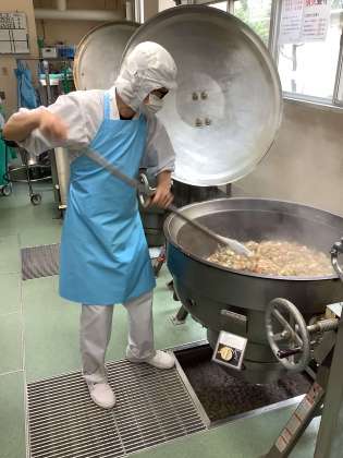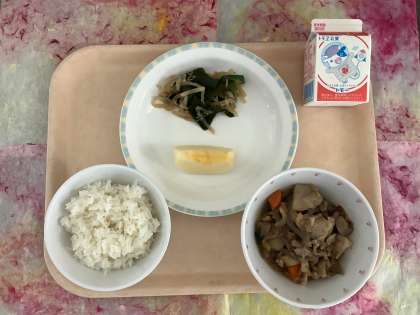 今日は山形県の舟形小学校からいただいたお米を炊きました。そして郷土料理の「いも煮」です。山形県では、里芋の収穫時期の秋から冬にかけて河原で「いも煮会」が行われるそうです。