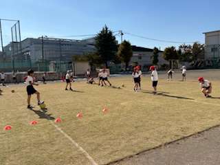 体育では、新しくラインサッカーが始まりました。
