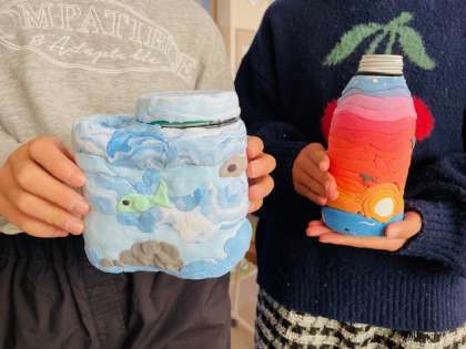 右が「貯金箱」 左が「海のペン立て」 です。 美しい!