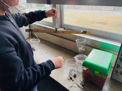 自由進度学習コースでは、教科書で進めるメンバー、キュビナで進めるメンバー、また希望者には輪番で「はかり」などを使って実際にいろいろなものの重さをはかるコーナーもつくっています。
