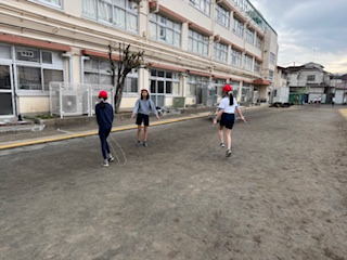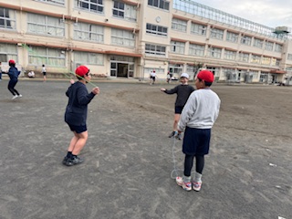 友達同士で短縄の技を練習しています!