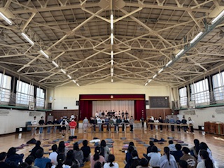 山崎太鼓の練習の様子を5年生に見てもらいました。