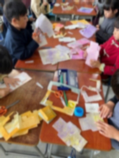 和紙を漉くところから、封筒に仕上げるまで全て1年生の手で仕上げました。