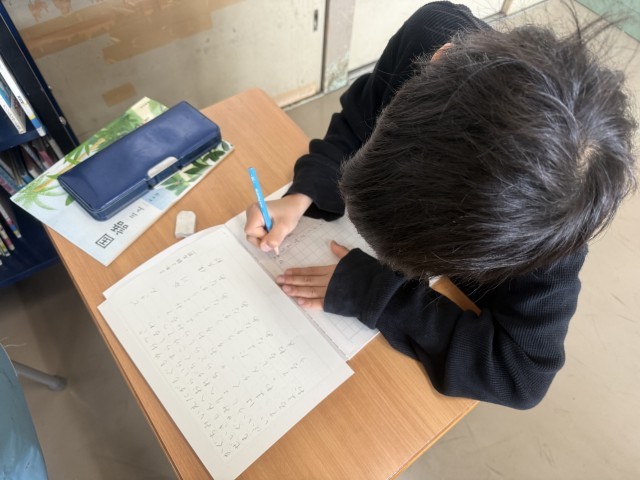 みんなで想像を膨らませながら音読と書写をしました。「誰よりもていねいに書くぞ!」という気持ちがひしひしと伝わりました。