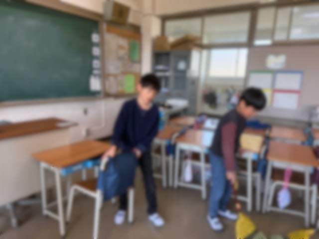 掃除の時間です。積極的に教室を綺麗にしてくれています。