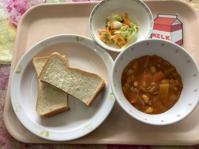 今日のジャムサンドは給食室で1枚ずつジャムを塗り、そのあと食べやすいよう半分に切っています。楽しみにしてくれている子もいるようです。昨日のたけのこごはんはたくさん廃棄が出てしまったので今日は残さず食べてくれたら嬉しいです。