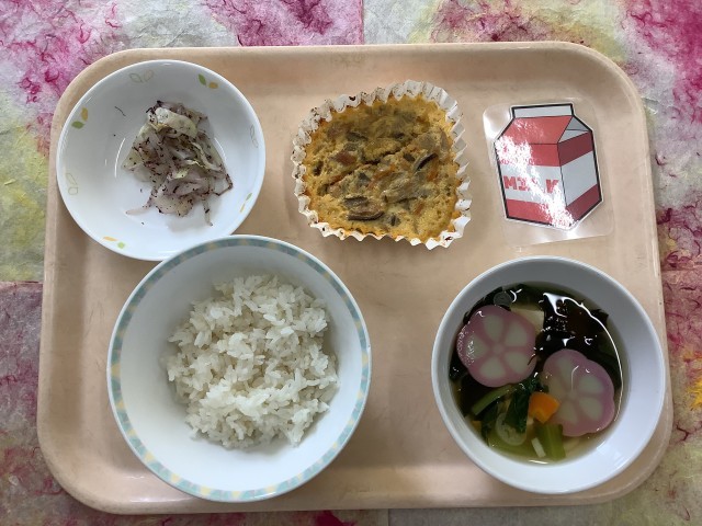 今日の給食は、卵焼きをごはんに乗せて食べる「親子丼風」です。卵焼きをごはんの上に乗せて食べたり、別々に食べたりとそれぞれ好きな方法で食べていました。みんなが美味しく食べられるよう給食室でひとつずつ丁寧に作りました。しっかり食べてくれたら嬉しいです。