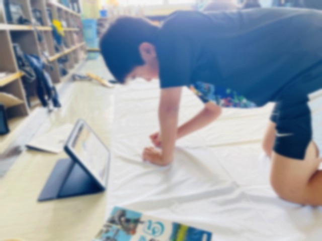 ソーラン節に披露に向けて、大漁旗をクラスで作成中です。