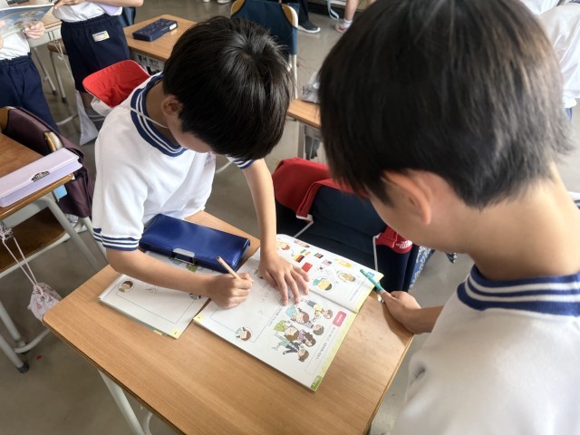 外国語では、「How are you?」と聞いて今日の気分を聞く学習をしました。