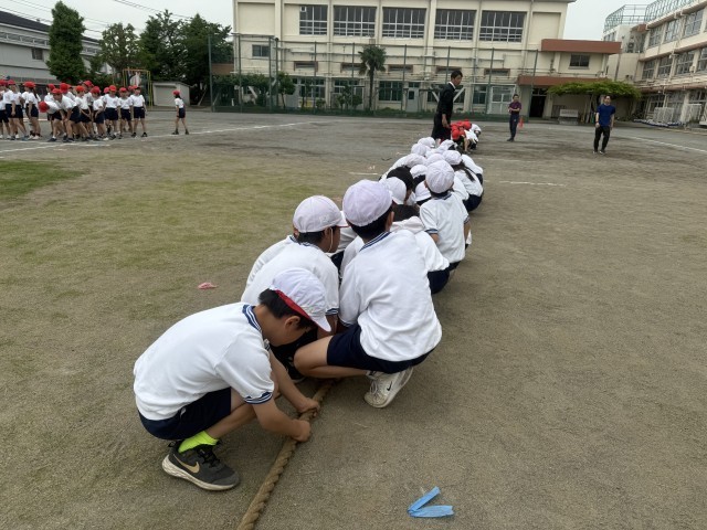 今日は、前回決めた並び方で、実際に綱引きをしました。精一杯、綱を引っ張る姿が見られました。