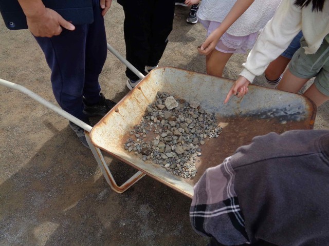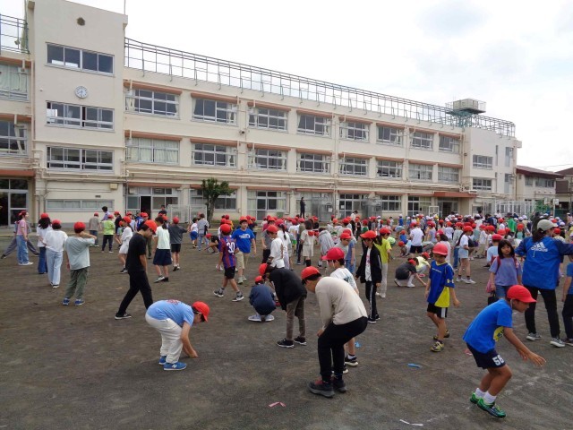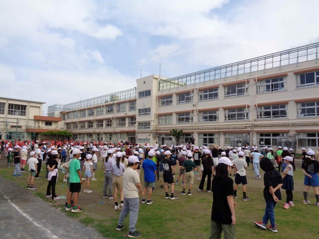 今日は全校で整列の隊形を確認して、安全な運動会開催のために石ひろいもしました。