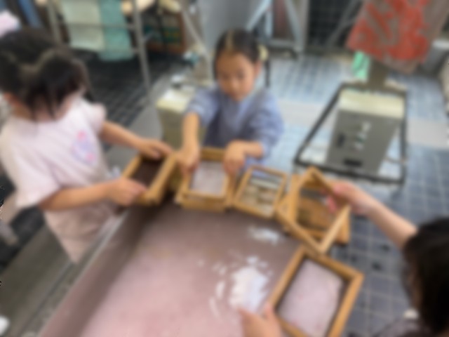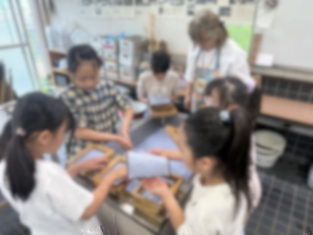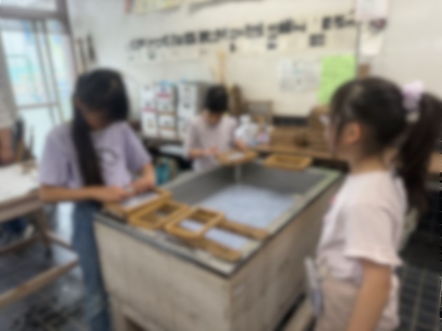 20分休みに伝統工芸室に向かう子どもたち。慣れた手つきで紙を漉いていました。山崎の伝統を大切にしています。