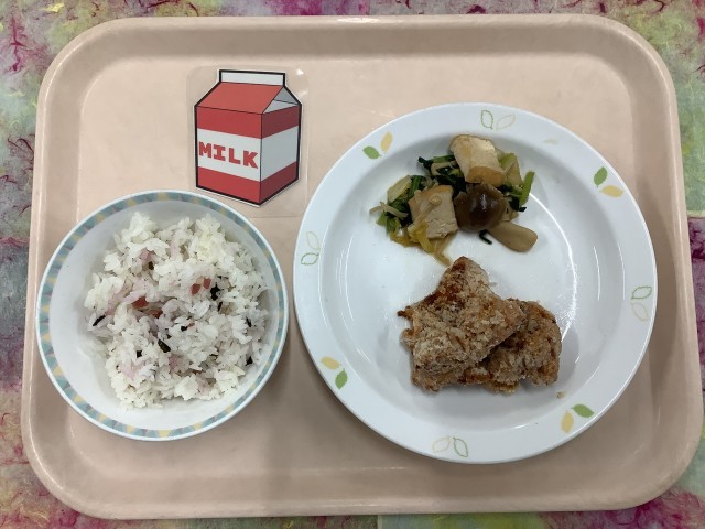 明日はいよいよスポーツ祭り「春」です。朝から校庭で「表現」の練習をする子どもたちの姿が見られます。頑張っているみんなを給食の「からあげ」で応援します。運動会のおかずでからあげを連想する人もいるのではないでしょうか。しっかり食べて明日は楽しく頑張ってください。