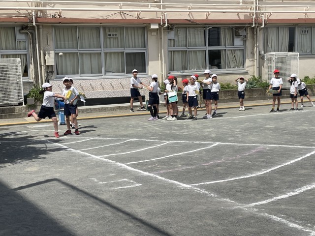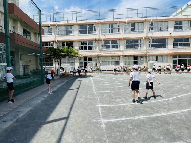 5年生はペアの2年生の子たちにコツを教えて、結果を記録、ボール拾いやボールを渡すサポートもしました。