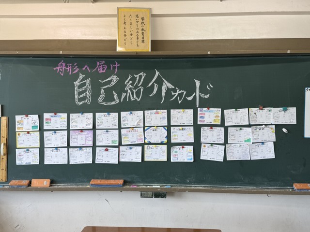 先日舟形のオリエンテーションを行いました。その後、舟形での交流に向け、自己紹介カードをみんなで作成しました。舟形に届いて交流の前に少しでも同じ班の子の情報がお互いに入るといいなと思います!