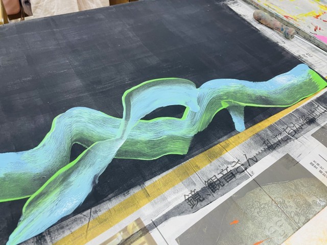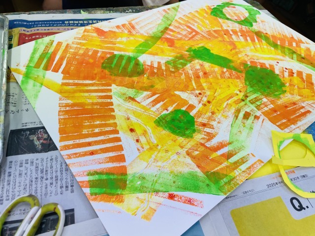 図工で、ローラーを使って楽しく工夫して作品をつくりました。