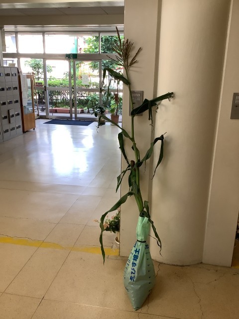 7月初めの今日は夏野菜「とうもろこし」の登場です。このとうもろこしは2年生が皮むきをしてくれました。給食室に届けたとうもろこしは大きな回転釜で茹でて、全校みんなでいただきます。2年生のみなさん、ありがとうございました。