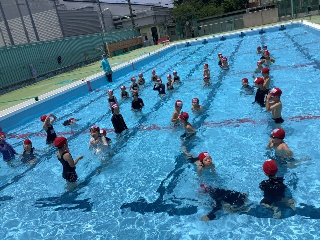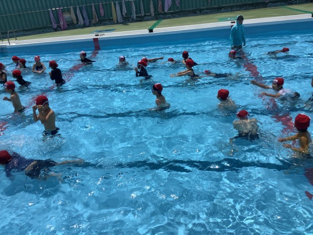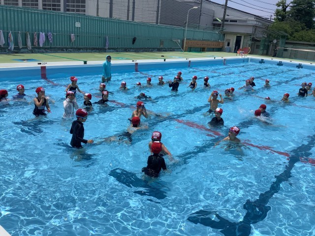 水泳の授業では、スポーツ祭り「春」で踊ったダンスホールを水中で踊ります。