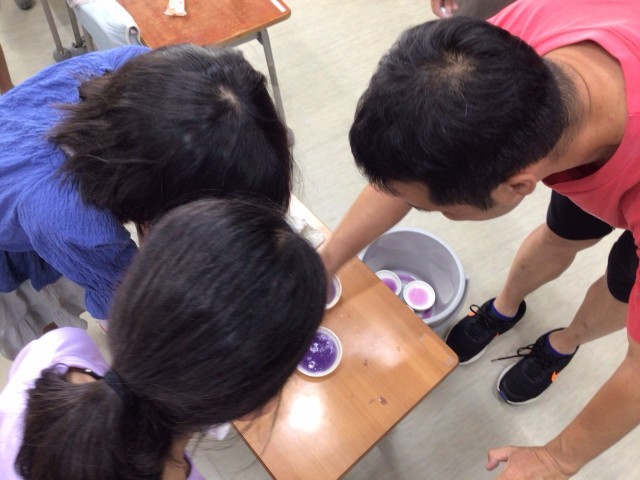 子どもたちは様々な液体を調べ、色が変わると「お〜!」と驚いていて、楽しみながら学習をしている様子が印象的でした。