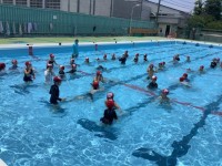 水泳の授業では、スポーツ祭り「春」で踊ったダンスホールを水中で踊ります。水の中の...