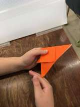 四角い折り紙と丸い折り紙を使って何かを折っています。 さて、一体何が出来るのでし...
