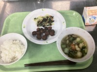 今日は、ご飯(有機米)さばのヤンニョム焼き、海藻サラダ、豆腐のチゲ風スープ、牛乳...