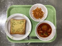 今日は、コーンマヨネーズパン、ポークシチュー、青菜ときのこのソテー、牛乳です。コ...