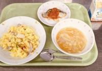 今日は、ご飯(有機米)、鮭の石狩焼き、ラーメンサラダ、どさんこ汁、牛乳です。今日...