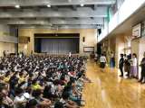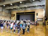 雨のため、想定を変更して体育館に避難しました。