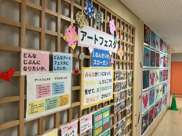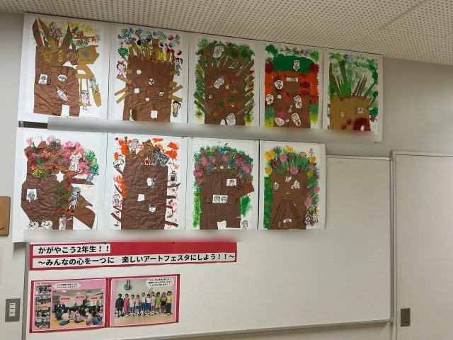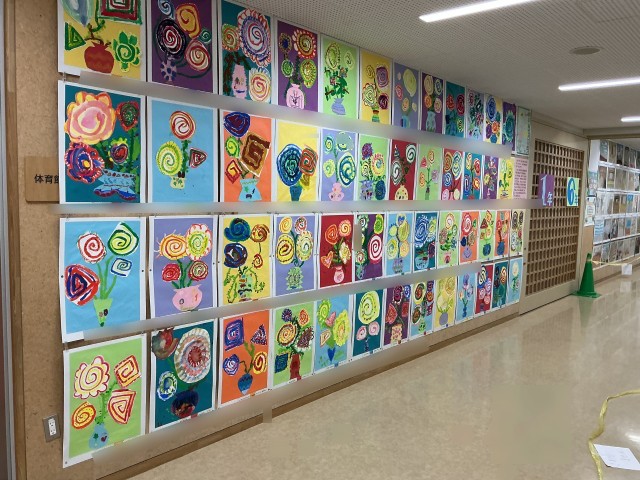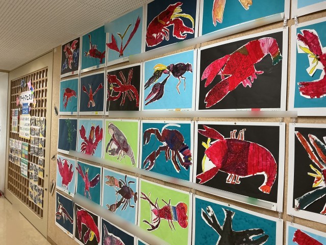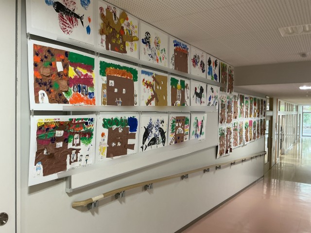 図工作品展が始まっています。連日、放課後にたくさんの方がいらしてくださっています。1、2年生の作品です。それぞれの個性が光っています。