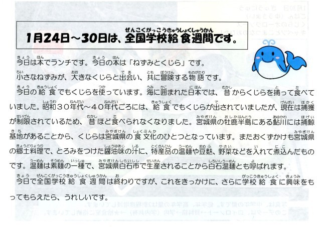 全国学校給食週間は、今日で終わりです。
