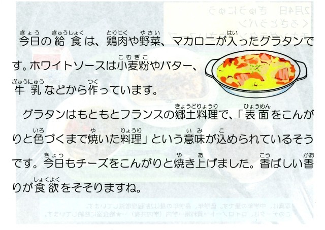 グラタンは、「焦げ目をつけた料理」ということだったのですね。「おこげ」って美味しいですよね。私の子供の頃、我が家では文化釜というアルミ鋳造の釜でごはんを炊いていたので、釜の底に「おこげ」ができました。これがとても美味しく感じたのを覚えています。