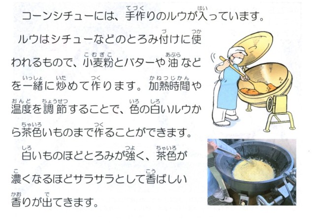 今日は、バニラトースト、コーンシチュー、スティっクサラダ、牛乳です。