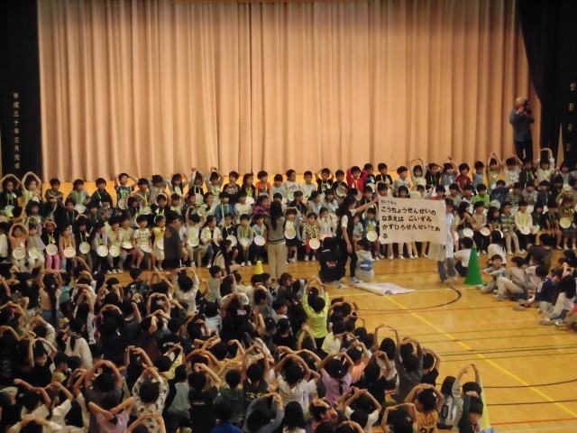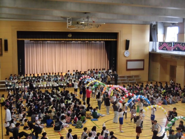4月23日の3時間目に一年生を迎える会を行いました。全校児童が体育館に集まって、歓迎の挨拶をしたり、学校クイズをしたりしました。一年生が、「一年生になったら」の歌を披露しました。元気いっぱいの歌声が体育館に響いていました。