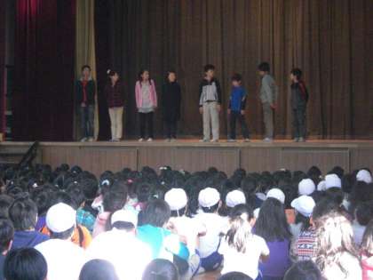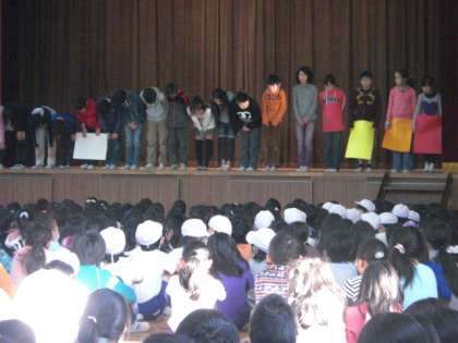 今朝の児童集会は、保健委員会児童の企画による発表集会です。