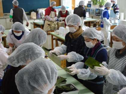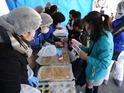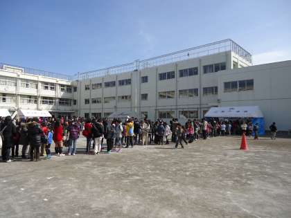 おもち販売のところには、長蛇の列!50キロ用意しましたが、このままでは足りなくなるのではと心配されるくらいの売れ行きです。おもちを作っている家庭科室は、大忙し。お手伝いの地域の方々、PTAの方々、おやじの皆さんが必死になって作ってくださりました。最後の最後まで、休まる暇がなかったと思います。本当にありがとうございました。