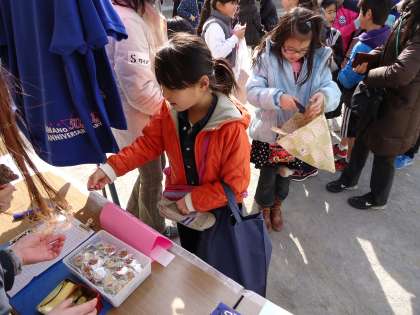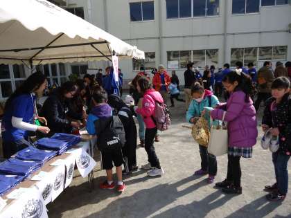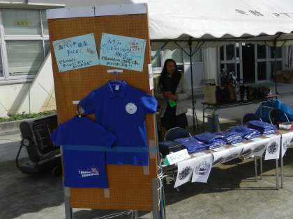 記念グッズも販売されました。スタッフの多くの方が着てるおそろいのブルーのポロシャツと、やまのんとやまぽん(50周年のキャラクター)の缶バッジを売るところにも、長い列ができていました。事前の宣伝が効いたのでしょう。缶バッジは子どもたちの大人気でした!