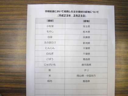 みなさん、2月もあと4日で終わりですが、今月の給食の目標を覚えていますか。今月の目標は『好き嫌いをしないで食べよう』です。給食は、みなさんの成長に必要な栄養を考えて、使う食品や献立、、みなさんに配る量などを決めています。苦手なものでも一口は食べるようにしましょう。