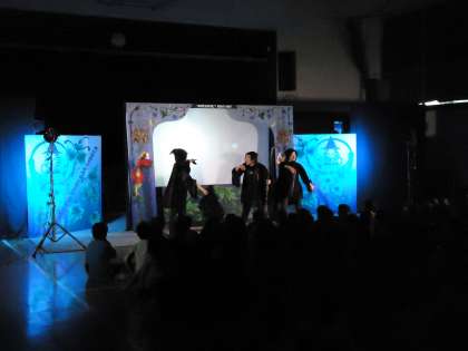 1、2年生は劇団かかし座による影絵を鑑賞しました。「魔法つかいのおとぎばなし」という劇を見ました。淡い色彩のとってもメルヘンの世界に、子どもたちは引き込まれていました。子どもたちはどうやって影絵を映しているのか、興味しんしんでした。ワークショップでは、手で作る影絵も習いました。心が温かくなる時間でした。