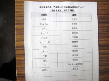 みなさんは、この豆の名前を知っていますか。これは、『大豆』です。2月の給食だよりにも載せましたが、大豆は、そのものだけでなく、色々なものに返信します。例えば、今日のごはんに入っている『油揚げ』や、味付けに使われている『しょうゆ』も大豆からできています。その証拠に、油揚げをよく噛むと、ほんのりと大豆の味がします。ぜひ、ごはんに入っている大豆と油揚げをよく噛んで、味を比べてみてください。