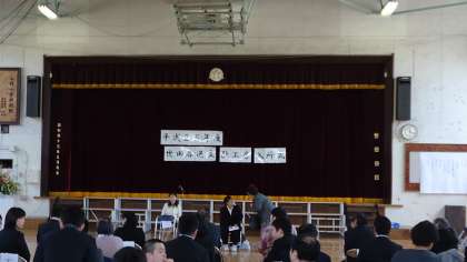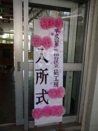 山野小学校のすぐそばにある砧工房さんの入所式が、体育館で行われました。山野小と砧工房とは、ふれあいコンサートや蔵まつりなどを通して、同じ街の仲間としてとってもいい関係にあります。今日の入所式も、地域の方々が大勢ご来賓として参列し、地域からも愛されているんだなあと感じました。素晴らしい天気の下、心温まる入所式でした。