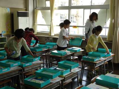 今日は8日の始業式、入学式に備えて、新6年生たちが前日準備をする日でした。たった数日前までは5年生だったのに、今日見る姿はもう6年生としてのやる気と自覚に満ちていました。一生懸命働いてくれている顔が、輝いていました。